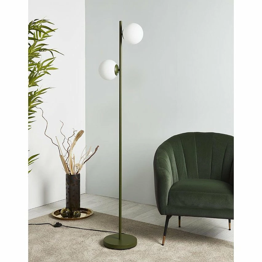 Le must du lampadaire vintage dans un coloris ultra tendance ! Optez pour une diffusion douce de la lumière grâce au verre dépoli des abat-jour.