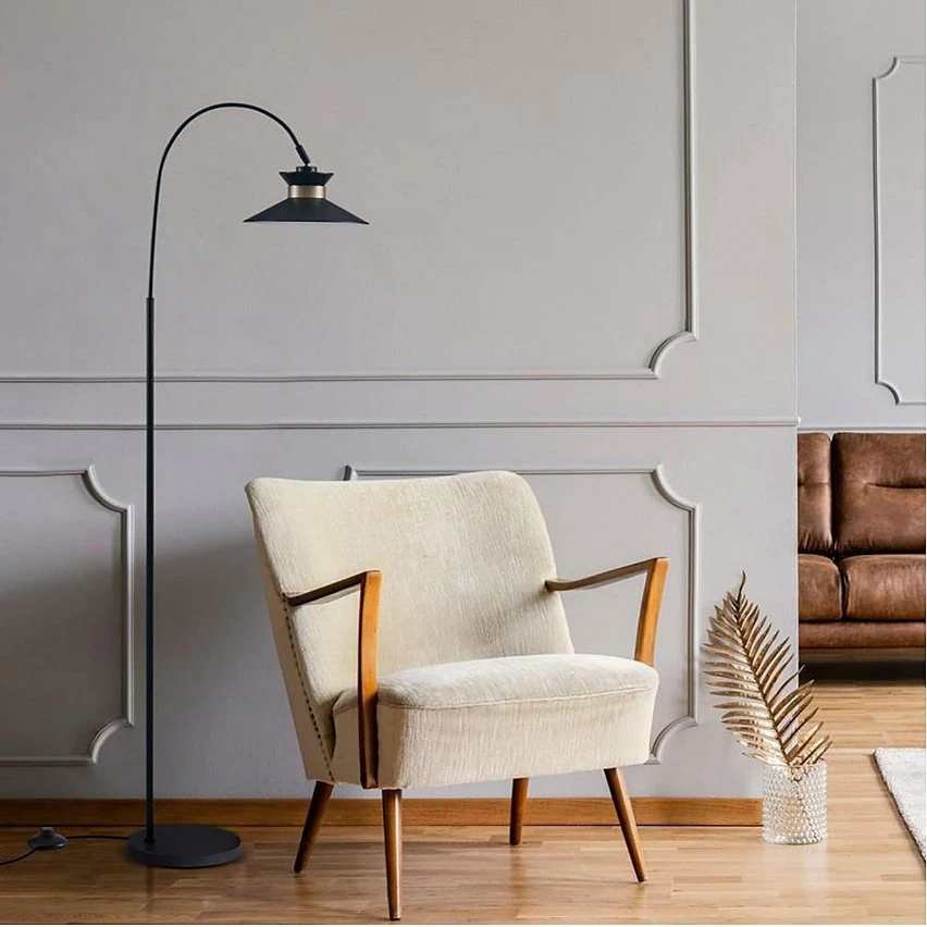 Lampadaire en Métal Noir avec détail Doré sur Abat-Jour de la gamme Botty.