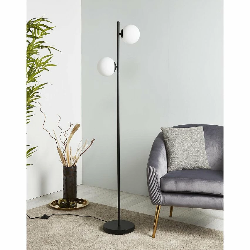 Avec sa structure en metal brossé et son abat-jour verre le lampadaire RETRO illuminera votre interieur. Matières: Abat-jour verre Pieds metal brossé, Dimensions produit: 160 (H) x 30 (l) x 30 (P) cm, Abat-jour: 13 (H) x 15 (DIA) Ampoule: G9, Couleur(s): Noir, Poids net: 4 kg