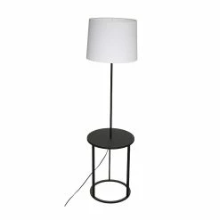 Lampadaire en MĂ©tal Noir avec tablette H 149 cm —