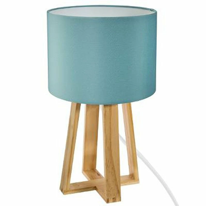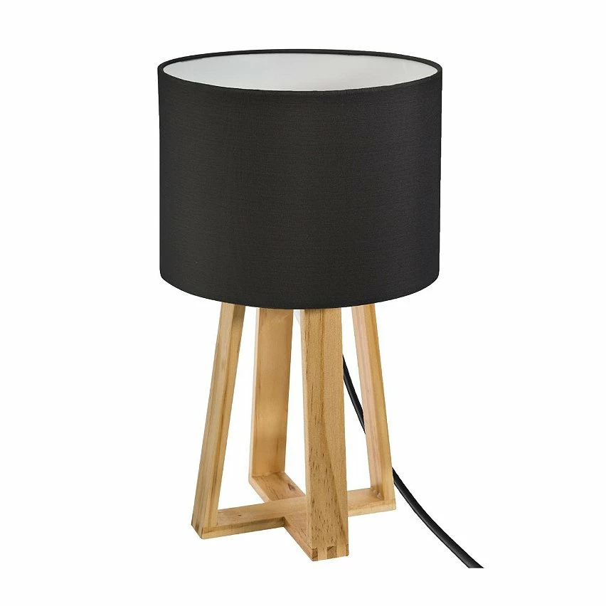 Lampe à Poser Pied en Bois et Abat-jour Noir H 34.5 cm —