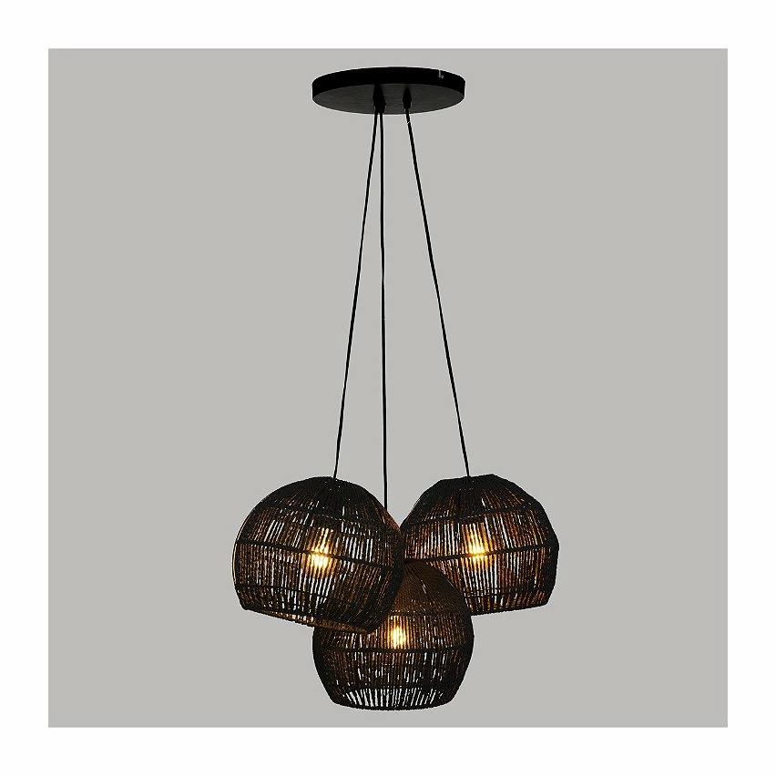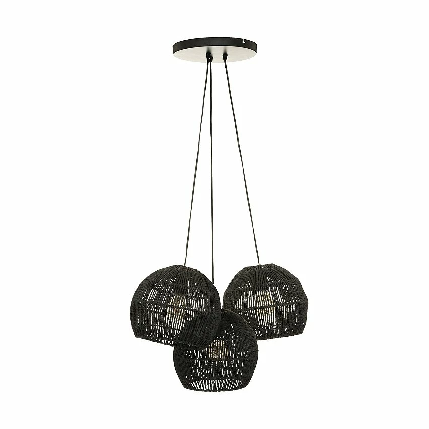 Luminaire Suspension en Corde 3 Têtes D. 25 x H. 95 cm —