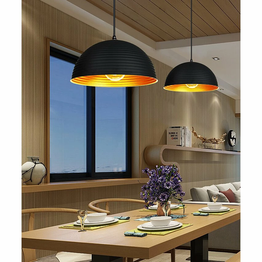 Cette suspension luminaire industrielle donne une lumière agréable. Le design moderne, élégant et vintage apporte une note particulièrement chic à votre intérieur. Et la délicate peinture noire à l’extérieur de l’abat-jour souligne la texture de la lampe et la peinture dorée interne adoucit la lumière.