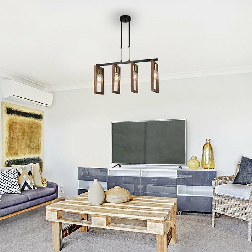 Cette lampe à suspension est la solution parfaite pour illuminer votre maison ou votre bureau avec style. Grâce à sa conception, il est idéal pour le salon et la zone de couchage. Kit de montage inclus, facile à nettoyer, facile à assembler. Couleur: Or, Noir, Bois | Dimensions: 67x17x91 cm | Matériel: Métal, Bois | Puissance: 4 x E27, Max 40W | Poids du produit: 2,2 Kg | Ampoule: Non incluse| Poids de l’imballage: 2,97 Kg | Nombres de boîtes: 1 | Dimensions de boîtes: 36x79x10 cm