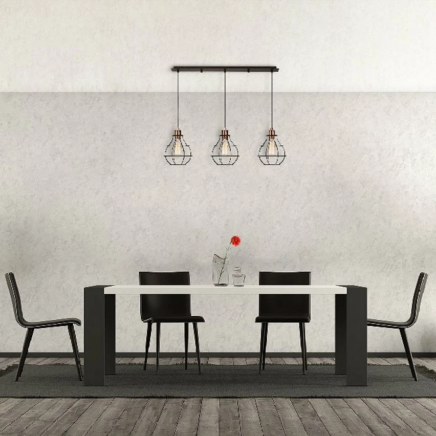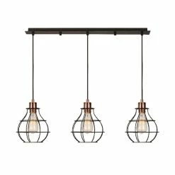 Cette lampe à suspension est la solution parfaite pour illuminer votre maison ou votre bureau avec style. Grâce à sa conception, il est idéal pour le salon et la zone de couchage. Kit de montage inclus, facile à nettoyer, facile à assembler. Colore: Rame, Nero | Dimensione Prodotto: L80xP10xA113 cm | Materiale: Metallo, Vernice Elettrostatica | Potenza: 3 x E27, Max 100W | Peso Prodotto: 3 Kg | Lampadina: Non Inclusa| Peso Imballo: 3,2 Kg | Numero Scatole: 1 | Dimensioni Imballo: 62x25x25 cm