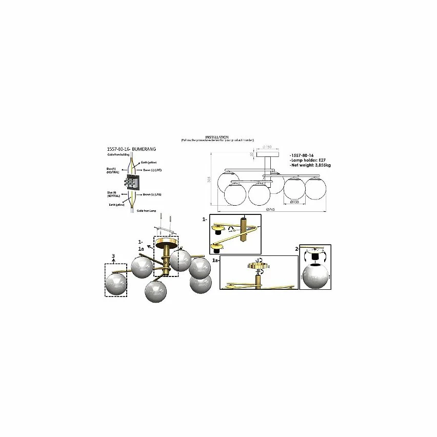 Cette lampe de plafond est la solution parfaite pour illuminer votre maison ou votre bureau avec style. Grâce à sa conception, il est idéal pour le salon et la zone de couchage. Kit de montage inclus, facile à nettoyer, facile à assembler. Couleur: Or | Dimensions: 84x84x35 cm | Matériel: Métal, Verre | Puissance: 6 x E27, Max 40W | Poids du produit: 3,69 Kg | Ampoule: Non incluse| Poids de l’imballage: 4,6 Kg | Nombres de boîtes: 1 | Dimensions de boîtes: 53x53x20 cm