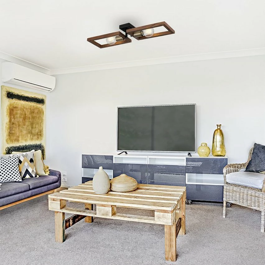Cette lampe de plafond est la solution parfaite pour illuminer votre maison ou votre bureau avec style. Grâce à sa conception, il est idéal pour le salon et la zone de couchage. Kit de montage inclus, facile à nettoyer, facile à assembler. Couleur: Or, Noir, Bois | Dimensions: 62x17x9 cm | Matériel: Métal, Bois | Puissance: 2 x E27, Max 40W | Poids du produit: 0,85 Kg | Ampoule: Non incluse| Poids de l’imballage: 1,14 Kg | Nombres de boîtes: 1 | Dimensions de boîtes: 21x33x12 cm