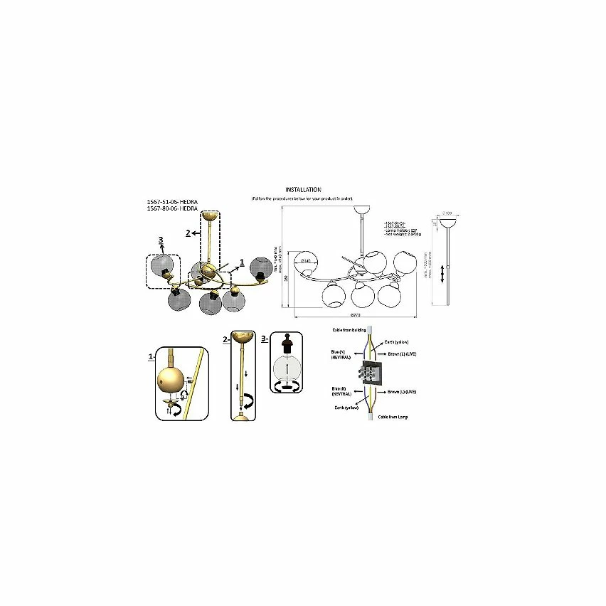 Cette lampe suspendue est la solution parfaite pour éclairer votre maison ou votre bureau avec style. Grâce à sa conception, il est idéal pour les espaces de vie et de repos. Kit de montage inclus, facile à nettoyer, facile à assembler. Couleur: Or | Dimensions: 88x88x95 cm | Matériel: Métal, Verre | Puissance: 6 x E27, Max 40W | Poids du produit: 2,33 Kg | Ampoule: Non incluse| Poids de l’imballage: 3,55 Kg | Nombres de boîtes: 1 | Dimensions de boîtes: 51x51x16 cm