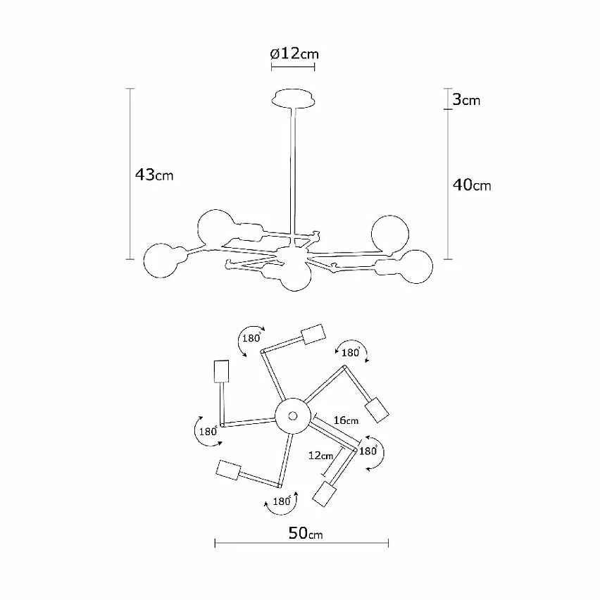 Ce lustre est la solution idéale pour éclairer votre maison ou votre bureau avec style. Grâce à sa conception, il est idéal pour les espaces de vie et de repos. Kit de montage inclus, facile à nettoyer, facile à assembler. Couleur: Noir | Dimensions: 50x50x43 cm | Matériel: Métal | Poids du produit: 3 kg | Poids pris en charge: – | Poids de l’imballage: 3,3 Kg | Nombres de boîtes: 1 | Dimensions de boîtes: 62x62x15 cm.
