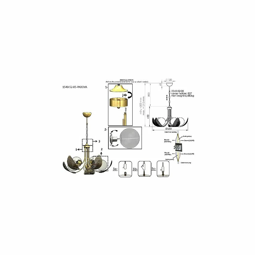 Ce lustre est la solution idéale pour éclairer avec style votre maison ou votre bureau. Grâce à sa conception, il est idéal pour les espaces de vie et de repos. Kit de montage inclus, facile à nettoyer, facile à assembler. Couleur: Or | Dimensions: 64x64x95 cm | Matériel: Métal, Verre | Puissance: 5 x E27, Max 40W | Poids du produit: 3,48 Kg | Ampoule: Non incluse| Poids de l’imballage: 3,7 Kg | Nombres de boîtes: 1 | Dimensions de boîtes: 53x53x20 cm