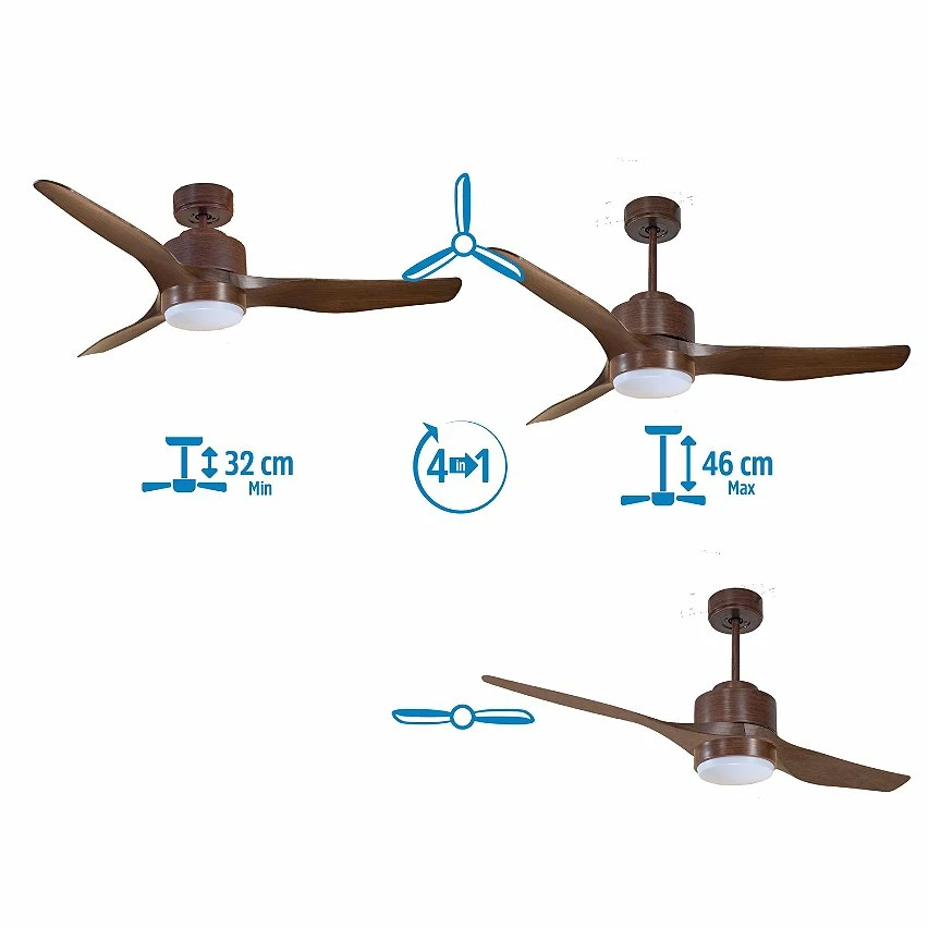 Le moteur Ă courant continu DC2 de couleur marron permet des installations sur des plafonds jusqu’Ă 27Âș d’inclinaison et est servi avec deux tiges pour une installation Ă la hauteur appropriĂ©e (13,5 cm et 25 cm). Il est parfait pour 2 ou 3 pales, car il dispose d’une fonction auto Ă©quilibrĂ©e. Il prend Ă©galement en charge le kit de lumiĂšre. Ce modĂšle est rĂ©versible, dĂ©sestratificateur d’air, de sorte qu’en hiver, vous pouvez inverser ses pales pour que son mouvement dĂ©place l’air chaud vers le bas, agissant en complĂ©ment de votre systĂšme de chauffage et favorisant une consommation optimisĂ©e. Il comprend Ă©galement un thermostat Ă sa base, de sorte que vous pouvez le programmer pour que le ventilateur fonctionne en fonction de la tempĂ©rature ambiante.