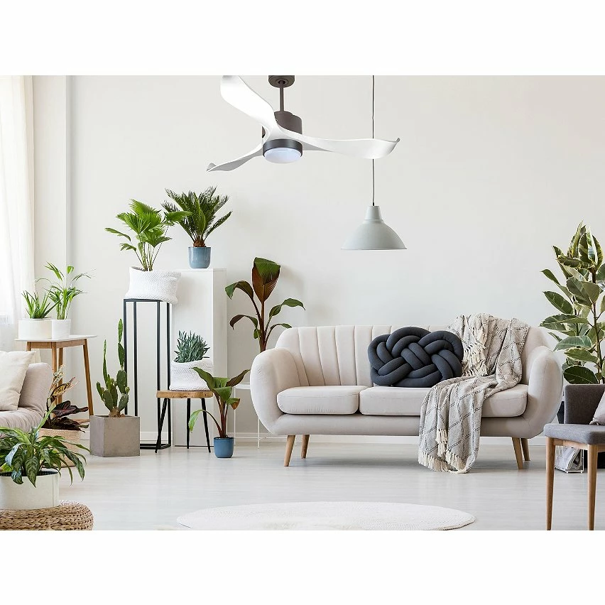 Les pales aérodynamiques en ABS confèrent au ventilateur une grande légèreté, et ont été traitées à la main pour être totalement équilibrées et ne pas produire de vibrations. Ce modèle à 3 Pales de couleur blanc a un diamètre de 132 cm et atteint une grande vitesse.
