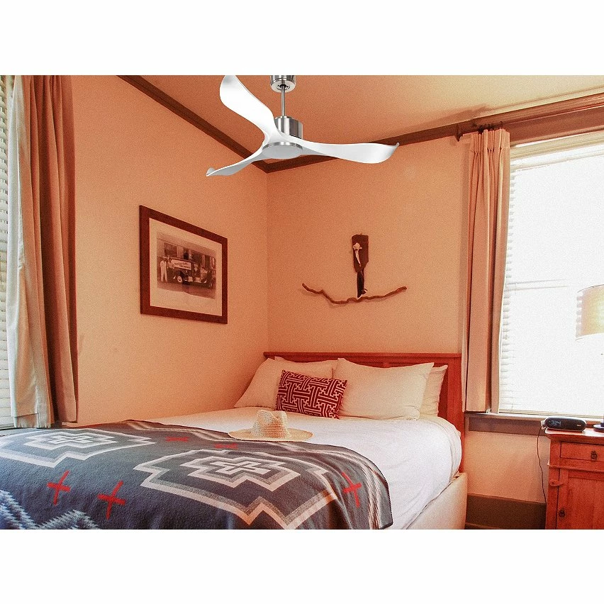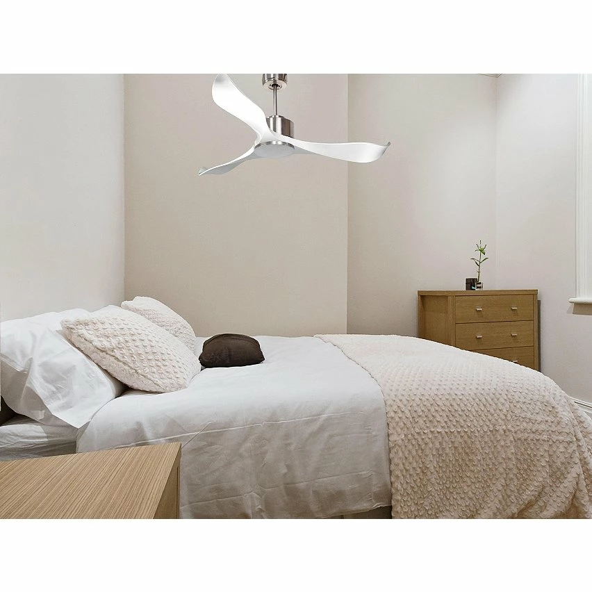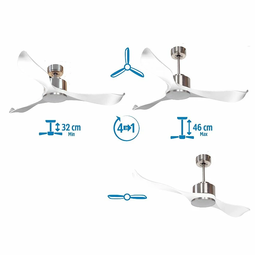 Le moteur Ă courant continu argentĂ© DC3 permet des installations dans les plafonds jusqu’Ă 27Âș d’inclinaison et est servi avec deux tiges pour ĂȘtre installĂ© Ă la hauteur appropriĂ©e (13,5 cm et 25 cm). Il est parfait pour 2 ou 3 pales, car il dispose d’une fonction auto Ă©quilibrĂ©e. Il prend Ă©galement en charge le kit de lumiĂšre. Ce modĂšle est rĂ©versible, de sorte qu’en hiver, vous pouvez inverser ses pales pour que son mouvement dĂ©place l’air chaud vers le bas, agissant en complĂ©ment de votre systĂšme de chauffage et favorisant une consommation optimisĂ©e. Il comprend Ă©galement un thermostat Ă sa base, de sorte que vous pouvez le programmer pour que le ventilateur fonctionne en fonction de la tempĂ©rature ambiante.
