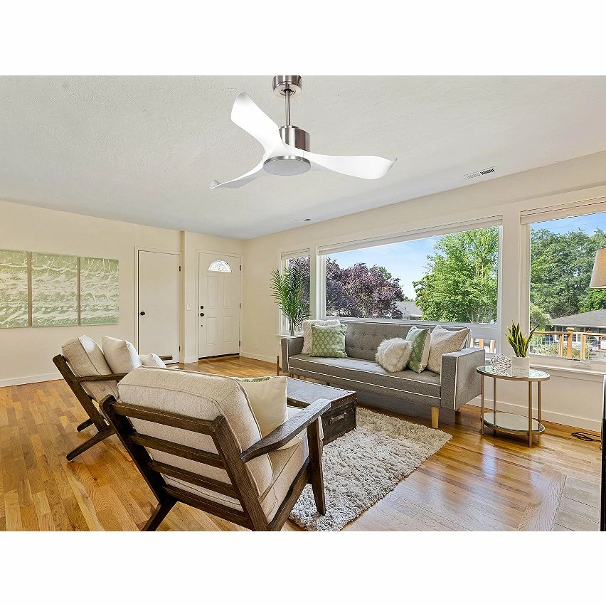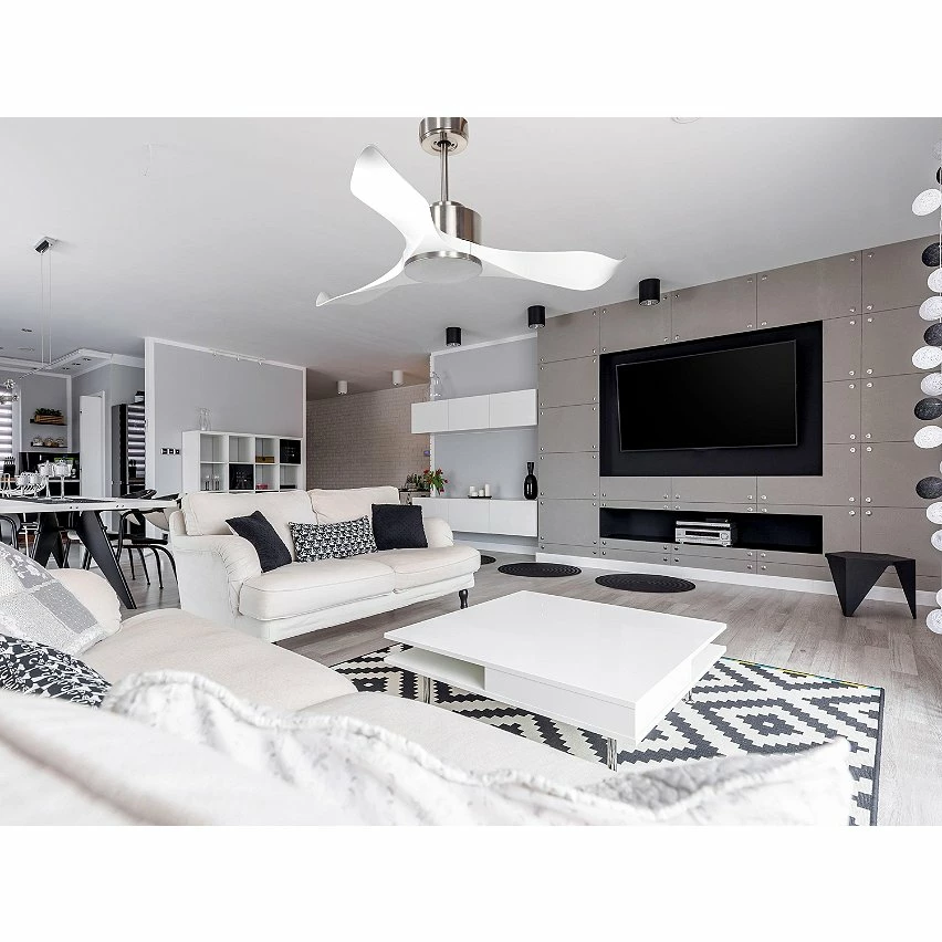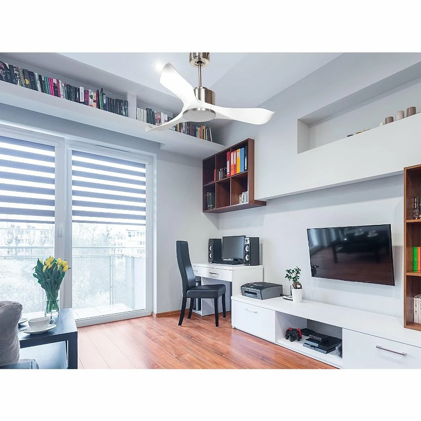 Le moteur Ă courant continu argentĂ© DC3 permet des installations dans les plafonds jusqu’Ă 27Âș d’inclinaison et est servi avec deux tiges pour ĂȘtre installĂ© Ă la hauteur appropriĂ©e (13,5 cm et 25 cm). Il est parfait pour 2 ou 3 pales, car il dispose d’une fonction auto Ă©quilibrĂ©e. Il prend Ă©galement en charge le kit de lumiĂšre. Ce modĂšle est rĂ©versible, de sorte qu’en hiver, vous pouvez inverser ses pales pour que son mouvement dĂ©place l’air chaud vers le bas, agissant en complĂ©ment de votre systĂšme de chauffage et favorisant une consommation optimisĂ©e. Il comprend Ă©galement un thermostat Ă sa base, de sorte que vous pouvez le programmer pour que le ventilateur fonctionne en fonction de la tempĂ©rature ambiante.