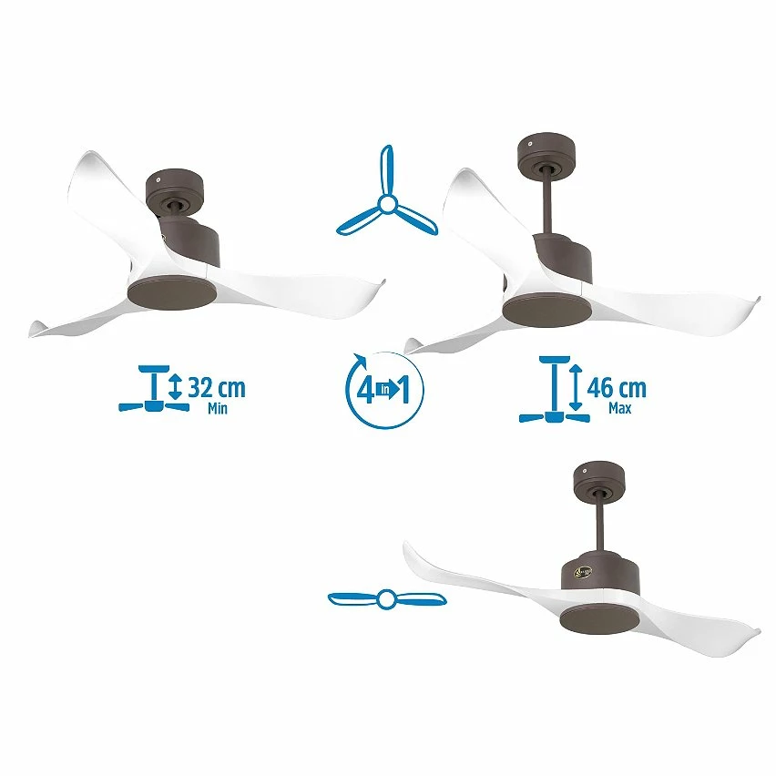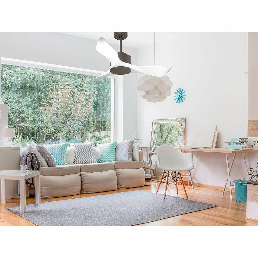Le moteur Ă courant continu noir DC6 permet des installations dans les plafonds jusqu’Ă 27Âș d’inclinaison et est servi avec deux tiges pour ĂȘtre installĂ© Ă la hauteur appropriĂ©e (13,5 cm et 25 cm). Il est parfait pour 2 ou 3 pales, car il dispose d’une fonction auto Ă©quilibrĂ©e. Il prend Ă©galement en charge le kit de lumiĂšre. Ce modĂšle est rĂ©versible, de sorte qu’en hiver, vous pouvez inverser ses pales pour que son mouvement dĂ©place l’air chaud vers le bas, agissant en complĂ©ment de votre systĂšme de chauffage et favorisant une consommation optimisĂ©e. Il comprend Ă©galement un thermostat Ă sa base, de sorte que vous pouvez le programmer pour que le ventilateur fonctionne en fonction de la tempĂ©rature ambiante.