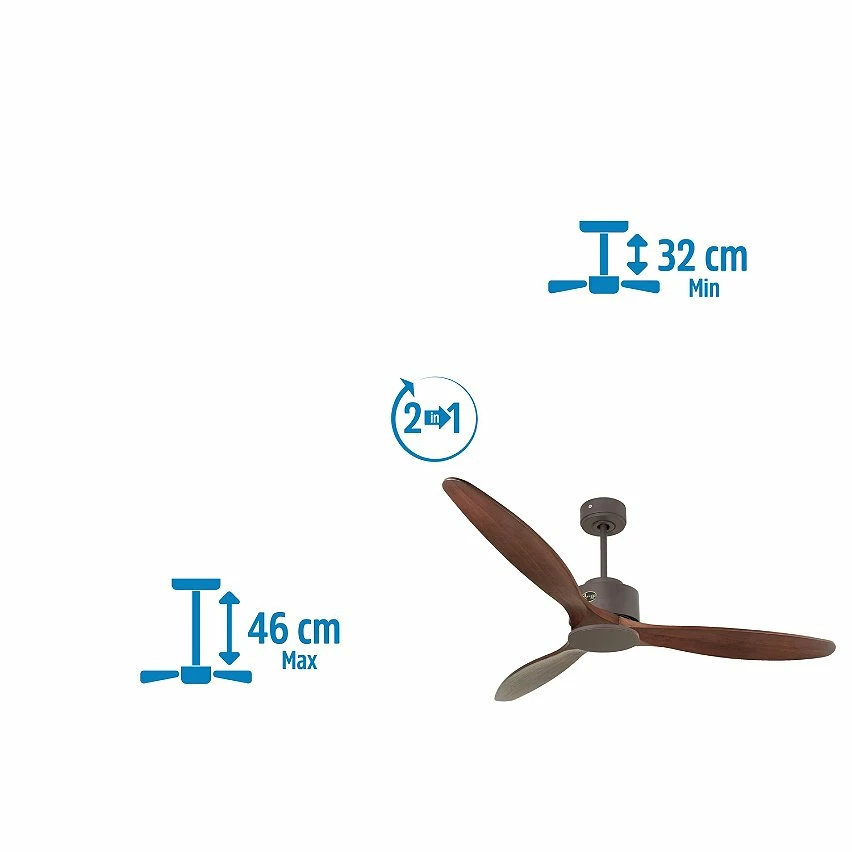 Les pales aĂ©rodynamiques en ABS confĂšrent au ventilateur une grande lĂ©gĂšretĂ©, et ont Ă©tĂ© traitĂ©es Ă la main pour ĂȘtre totalement Ă©quilibrĂ©es et ne pas produire de vibrations. Ce modĂšle Ă 3 Pales marron a un diamĂštre de 166 cm et atteint une grande vitesse.