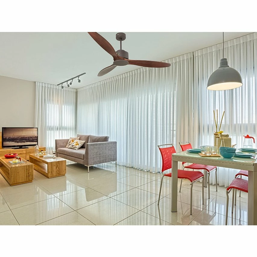 Le moteur Ă courant continu noir DC6 permet des installations dans les plafonds jusqu’Ă 27Âș d’inclinaison et est servi avec deux tiges pour ĂȘtre installĂ© Ă la hauteur appropriĂ©e (13,5 cm et 25 cm). Il est parfait pour 2 ou 3 pales, car il dispose d’une fonction auto Ă©quilibrĂ©e. Il prend Ă©galement en charge le kit de lumiĂšre. Ce modĂšle est rĂ©versible, dĂ©sestratificateur d’air, de sorte qu’en hiver, vous pouvez inverser ses pales pour que son mouvement dĂ©place l’air chaud vers le bas, agissant en complĂ©ment de votre systĂšme de chauffage et favorisant une consommation optimisĂ©e. Il comprend Ă©galement un thermostat Ă sa base, de sorte que vous pouvez le programmer pour que le ventilateur fonctionne en fonction de la tempĂ©rature ambiante.