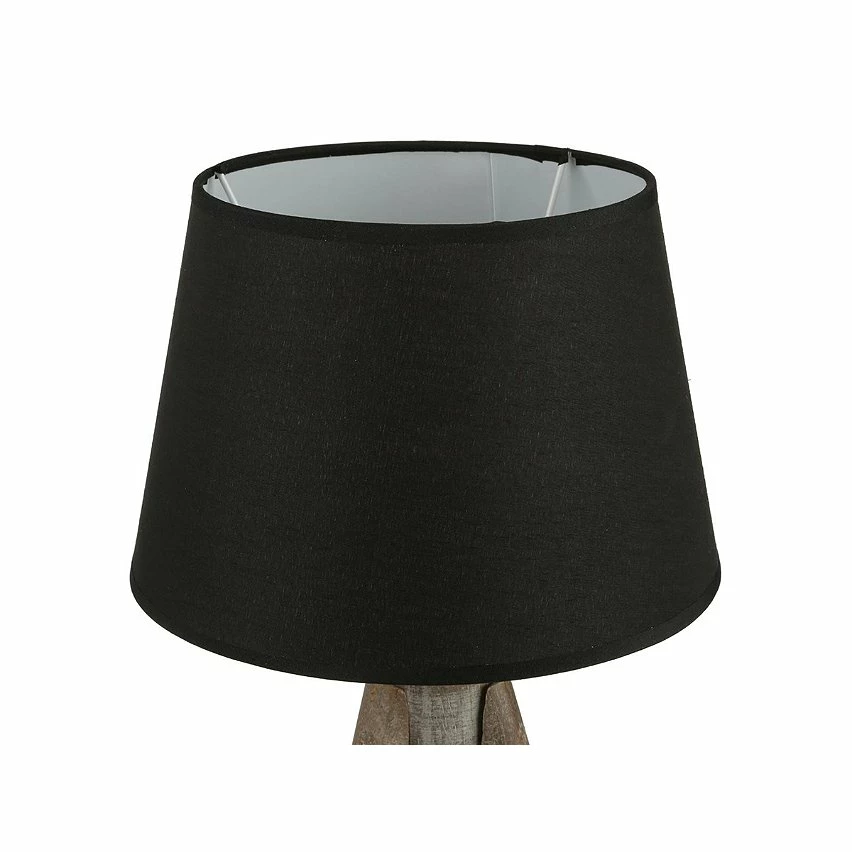 Lampe en bois et abat-jour en forme de cône. Hauteur 46 cm. Fonctionne avec un secteur et une ampoule E27 de 40W maximum.