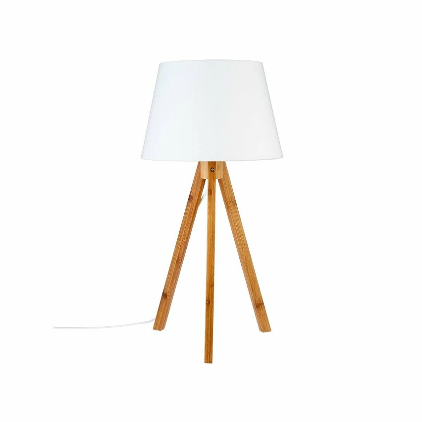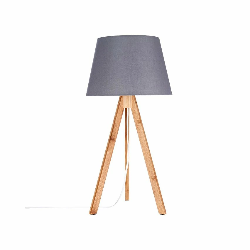 Lampe à poser sur trépied en bambou. Son abat jour en tissu est disponible en 2 coloris : blanc, gris. Alimentation : secteur. Puissance max. 40W. Dimensions : D. 28 x H. 55,5 cm .