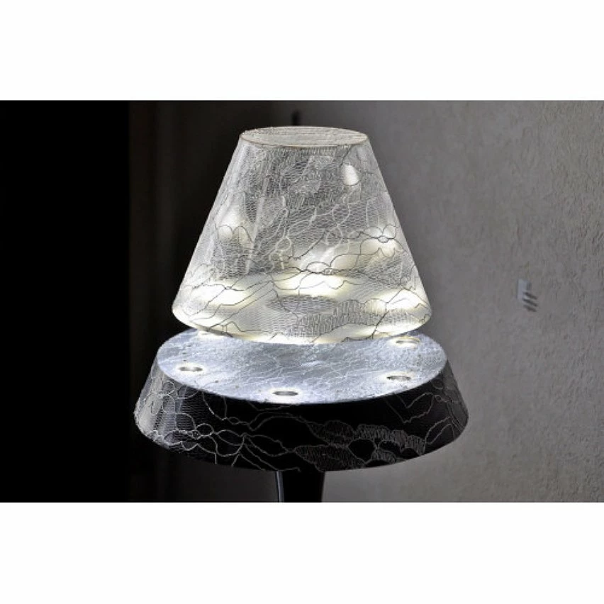 Le secret de ce produit haut de gamme est son système électromagnétique qui permet de garder en suspension un aimant sur lequel est posé l’abat-jour. Vous surprendrez tous vos amis avec cette lampe technologique et son abat-jour en lévitation en mouvement de rotation.