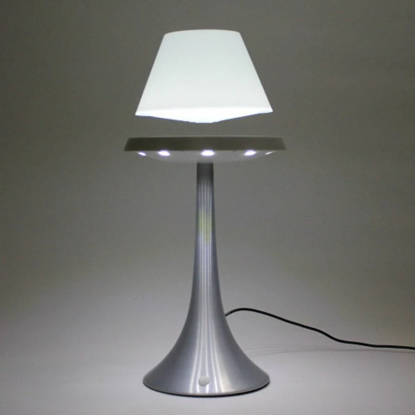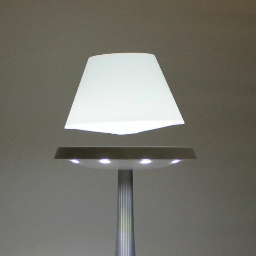 La lĂ©vitation de l’abat-jour repose sur le phĂ©nomĂšne de sustentation Ă©lectromagnĂ©tique. Un champ Ă©lectromagnĂ©tique est gĂ©nĂ©rĂ© par le courant Ă©lectrique au niveau du socle de l’abat-jour. Ce champ magnĂ©tique repousse et stabilise ainsi l’aimant Ă 2 cm de hauteur.