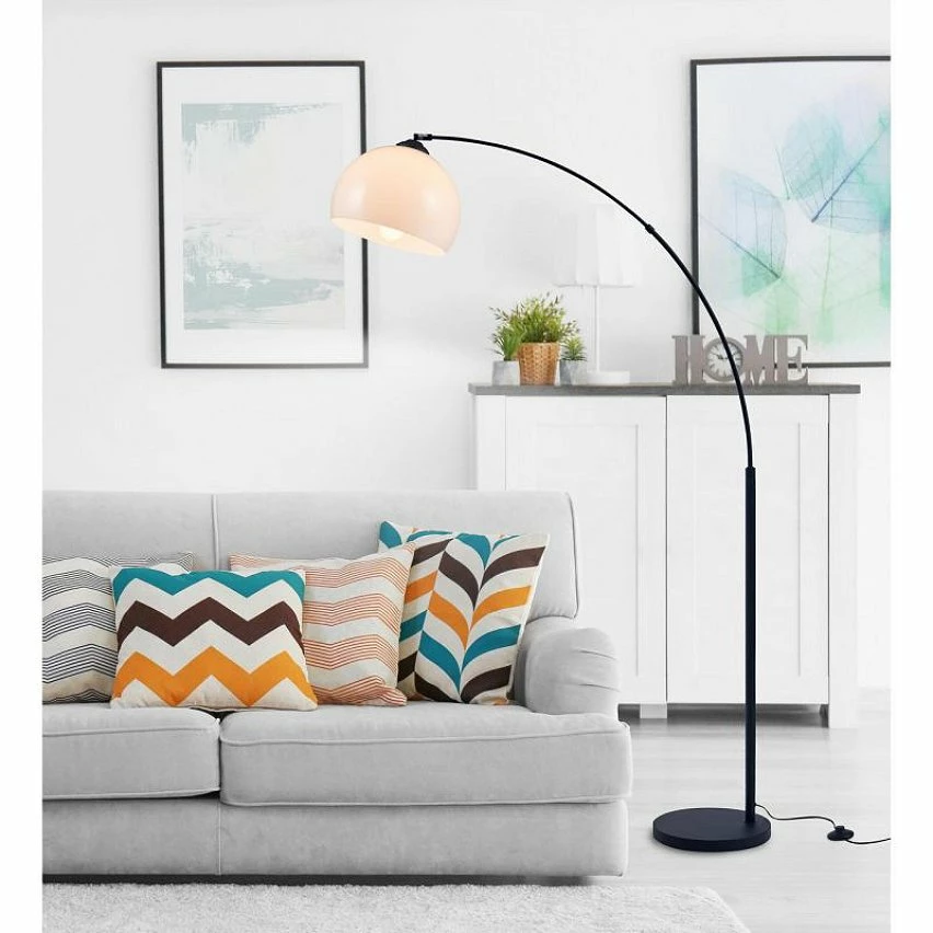 DAISY Lampadaire Arc Métal Noir, Réflecteur Acrylique Blanc, Dimensions : 30x110x170H, ampoule E27 40W non fournie