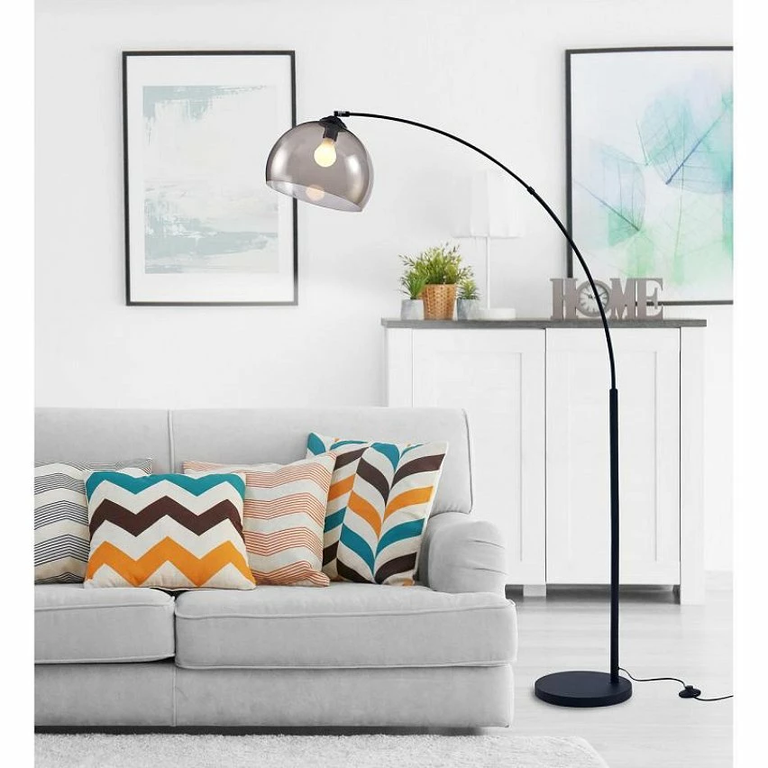 DAISY Lampadaire Arc Métal Noir, Réflecteur Acrylique Fumé, Dimensions : 30x110x170H, ampoule E27 40W non fournie