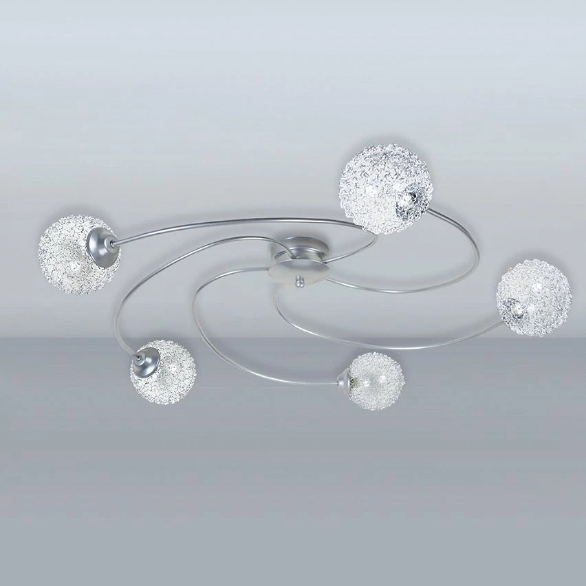 La lumière agréable de ce plafonnier s’adapte à tous les espaces et peut être associée à de nombreux éléments de décoration d’intérieur. Son design original attirera le regard et ses cinq boules assureront un éclairage suffisant et vous offriront de beaux effets d’ombre et une lumière douce et relaxante. – Plafonnier ACTUELLE multi bras métal aluminium – Abat-jour verre couleur transparent forme globe – Douille G9 x5 lumière – Ampoule non inclus conseillé: LED 7W (halogène, maxi. 40W) type capsule JC BI-PIN – Projection lumineuse ambiant – Connexion réseau électrique: boîtier de connexion isodom – Interrupteur non inclus – Style design – Classe de Protection I – Indice de protection: IP20 – Dimmable , dimmer non inclus – Tension de fonctionnement : 230V – Tension d’alimentation : 230V – Dimension abat-jour: Hauteur 11cm x Longueur 11cm x Largeur 11cm – Dimension global: Hauteur 15cm x Longueur 80cm x Largeur 80cm – Poids net du produit: 1,5Kg